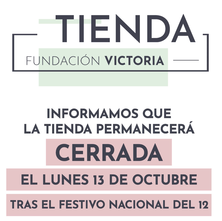 🛍️ El próximo lunes 13 de octubre, tras el festivo nacional del día anterior, la Tienda Fundación Victoria permanecerá cerrada.