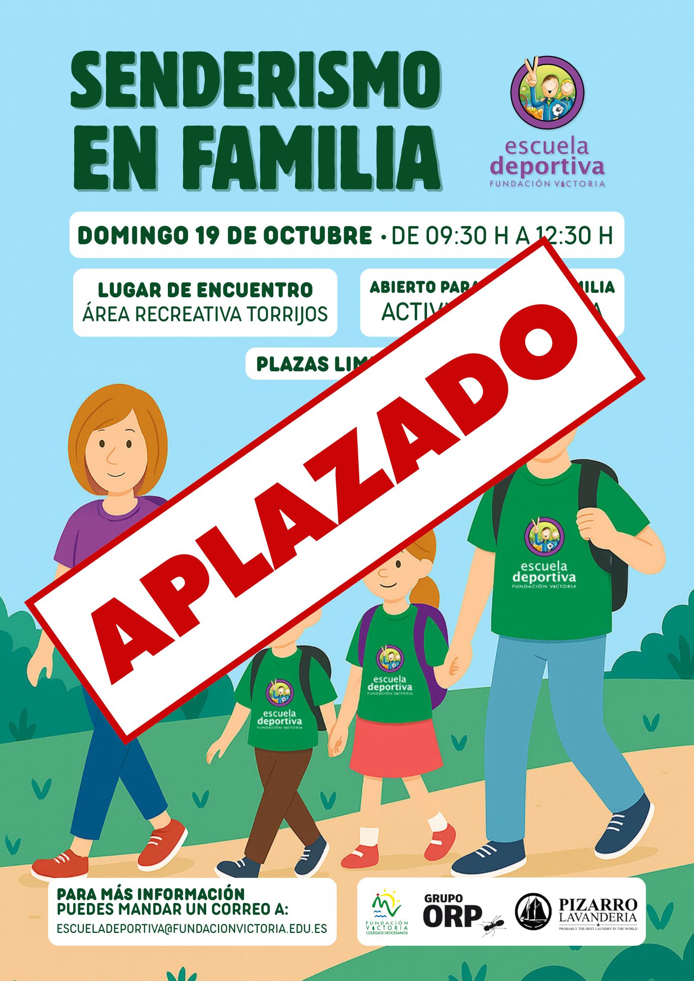 La Escuela Deportiva Fundación Victoria informa que la actividad “Senderismo en Familia”, prevista para celebrarse este fin de semana, queda aplazada.