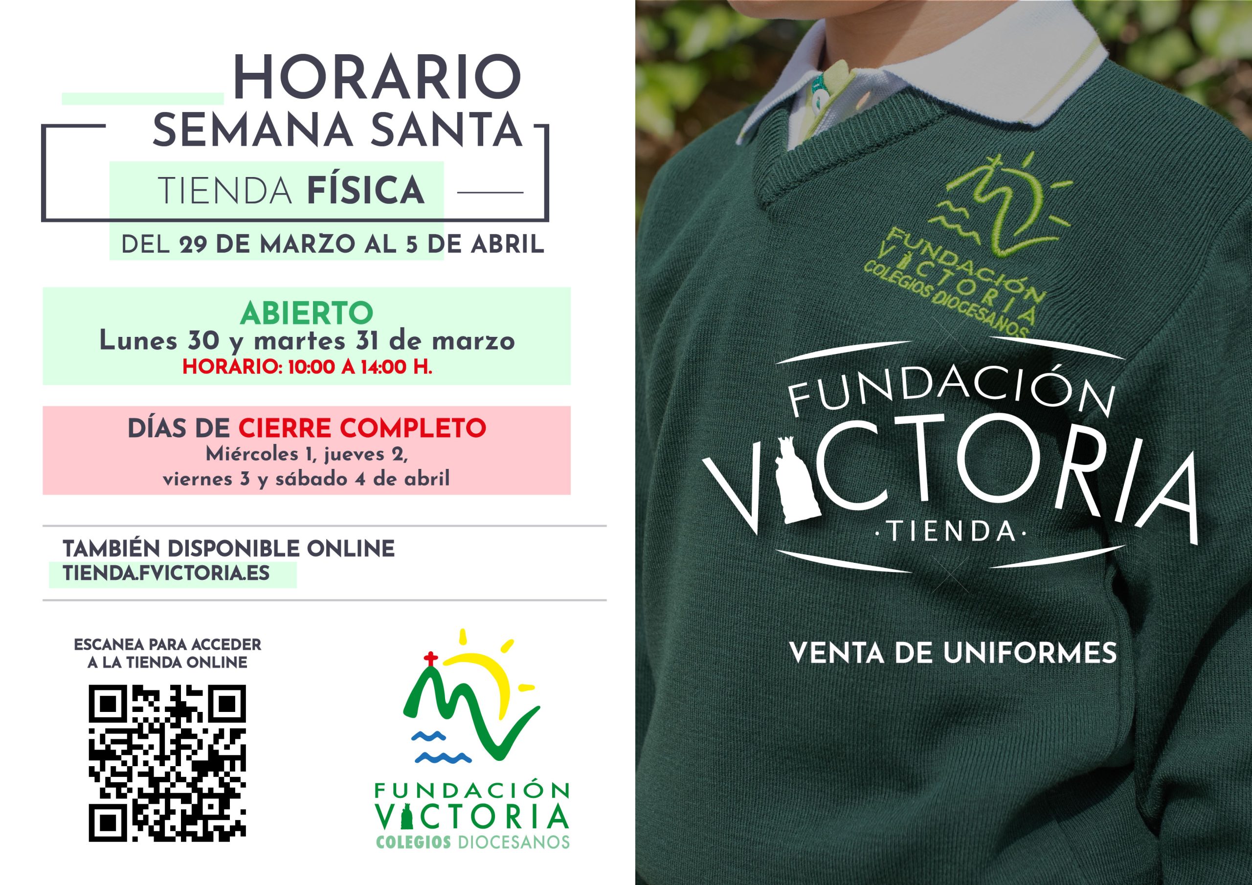 HORARIO DE LA TIENDA DE FUNDACIÓN VICTORIA EN SEMANA SANTA
